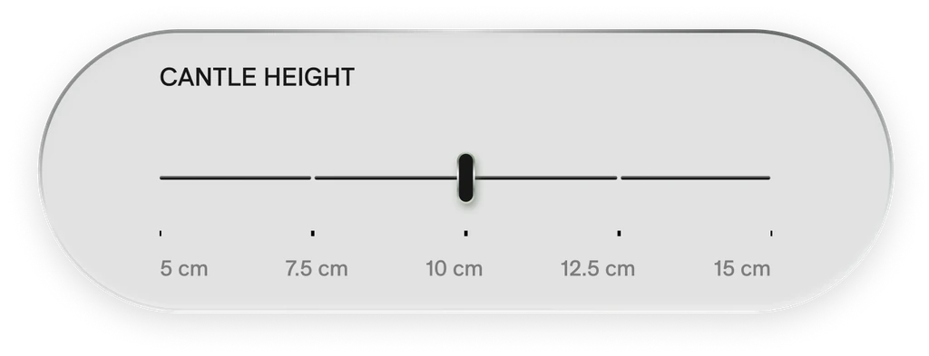 A refined tool for adjusting cantle height, with a clean, analog-inspired design that emphasizes clarity and control.