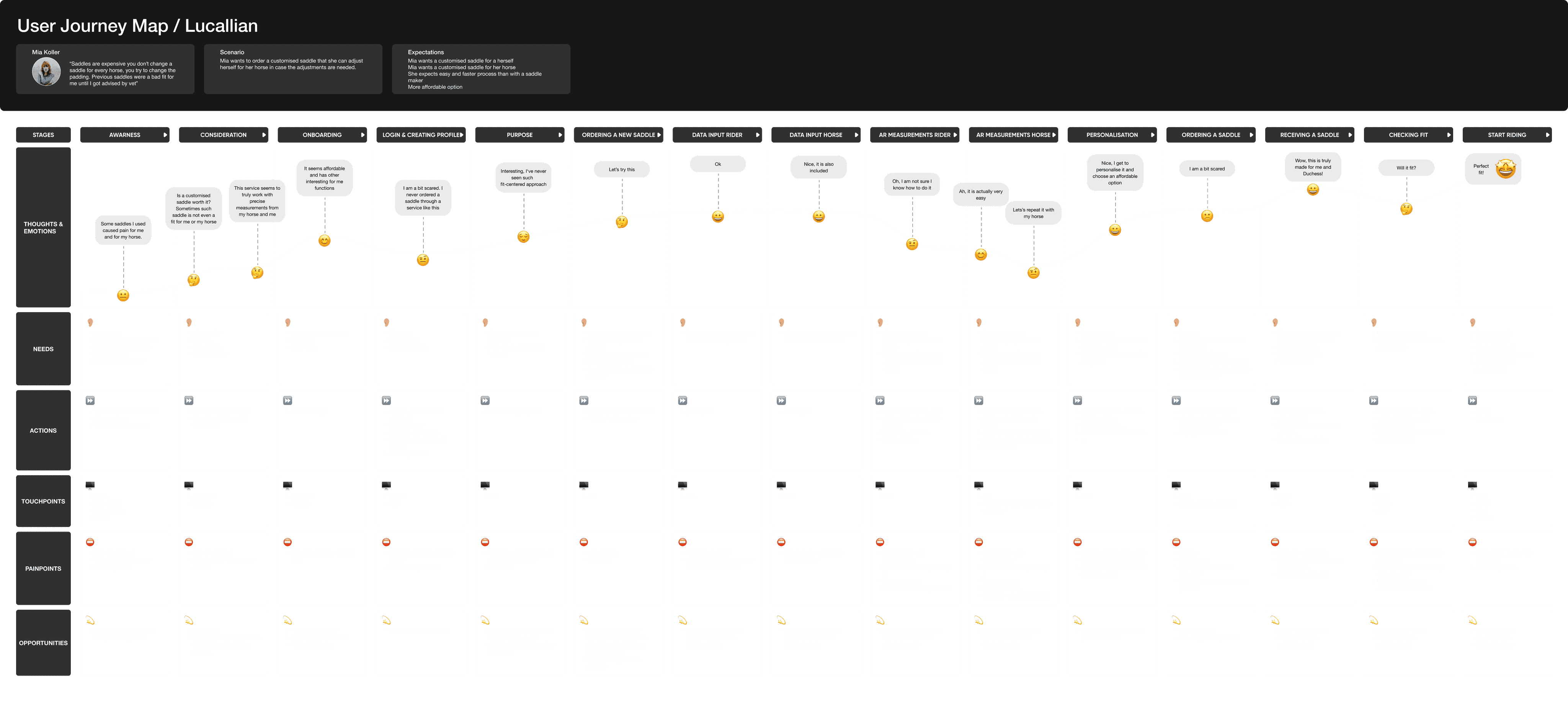 During the knowledge-intensive research stage, we conducted thorough desk and field research to understand the intricacies of saddle fitting and design. This included:
