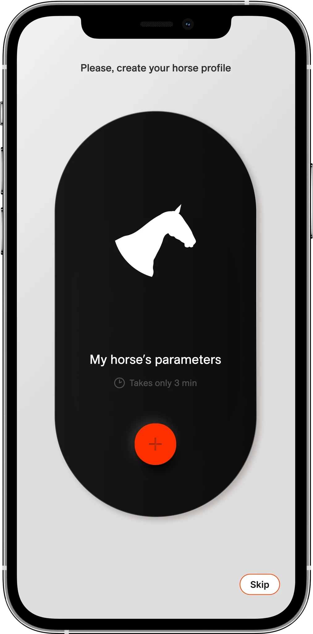 The smartphone app features a user-centric design that integrates AR scanning for an intuitive and interactive saddle fitting experience. With a clean interface and guided steps, users can effortlessly measure both rider and horse biomechanics, following the streamlined process provided.