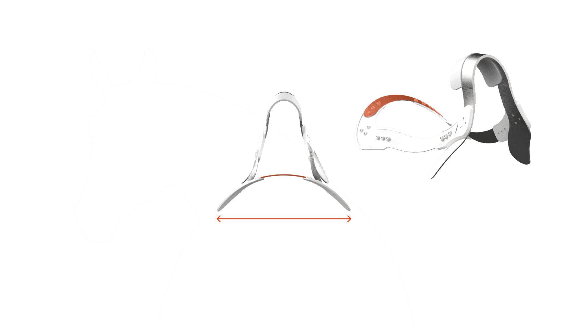 FlexTree Measurements are incorporated into the Gullet, providing customized comfort for the horse. The length adapts based on the horse's withers shape, while the height of the gullet can vary depending on neck clearance and flexibility, allowing for a personalized fit with a difference of 4-6 cm.